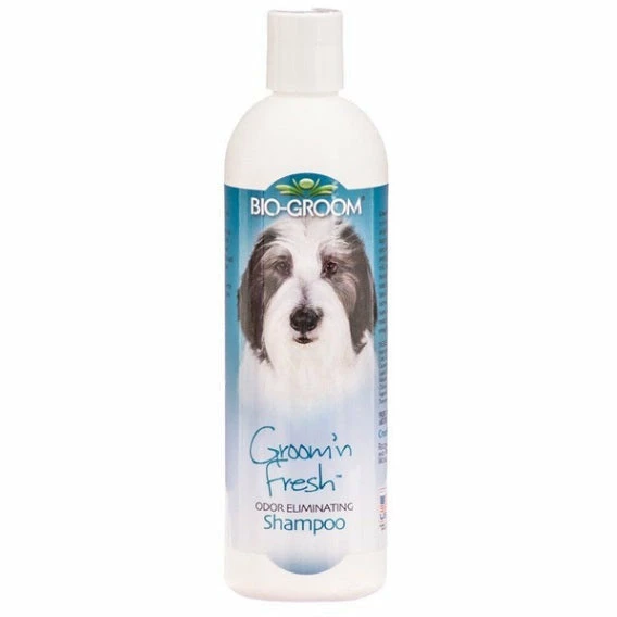 Bio-Groom Groom ‘N Fresh Shampoo is a dog shampoo specially formulated for odor elimination. Sulfate-free and formulated with selected perfume oils, this shampoo cleans and freshens up your pet with a long-lasting, pleasant scent. Your pet will stay fresh and clean for days.