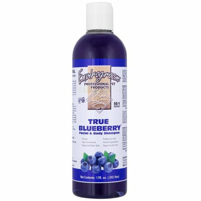 Envirogroom True Blueberry Shampoo-17oz is the ultimate pet shampoo for professionals. Effortlessly remove food and tear stains from the face with its clarifying properties. Its one-of-a-kind formula, consisting of certified organic aloe vera and blueberry extract, vitamins and proteins, will keep your pet looking and feeling their best. Highly economical and concentrated, this shampoo offers superior results and is safe even for puppies and horses. Pamper your pet with luxurious grooming.
