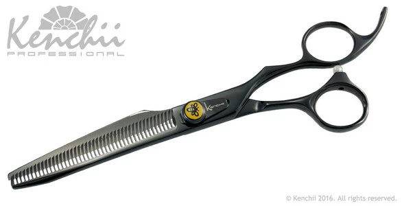 The Bumble Bee 44 tooth thinner will glide through thick coats with ease. Each tooth is double serrated for moderate blending power and the level 3 alloy ensures a long lasting sharp edge. With the sleek finish of the black titanium coating and the impressive, reliable performance this shear is sure to become a fast favorite!