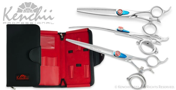 Set includes animal-friendly KEL5z faux leather 5-shear zipper, Level 2 molybdenum Five Star™ offset Double swivel 7.0″ straight shear, offset Double swivel 7.0″ curved shear, and offset swivel 46-tooth 6.5″ thinner.