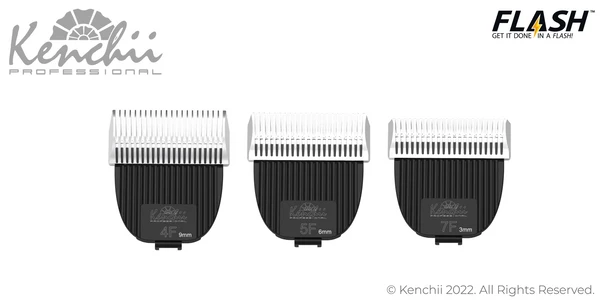Kenchii Flash™ blade sets are made with premium quality stainless steel alloys. Special proprietary coating is applied to make the blades run cooler and deliver exceptional performance every time.