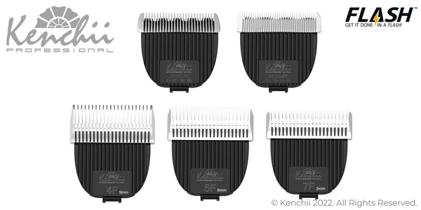 Kenchii Flash™ blade sets are made with premium quality stainless steel alloys. Special proprietary coating is applied to make the blades run cooler and deliver exceptional performance every time.