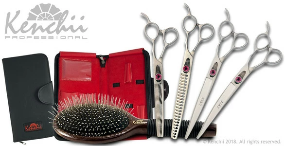 From our newest grooming line, the 8.0″ Love Kit is perfect for every day grooming. The semi-convex edge makes the Love shears a versatile tool suitable for every day and finish work. Featuring a complete set of Love model shears, our most popular grooming brush, and a 5-shear case, you’re sure to love the Kenchii Loves!