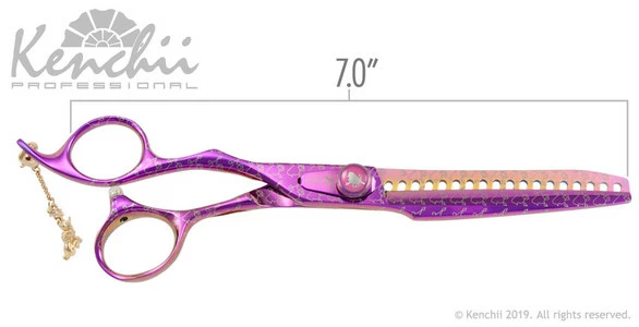 The Pink Poodle shear provides an effortless cut through even the coarsest of coats. The semi-convex edges are suitable for everyday grooming or finish work and the level 3 alloy ensures a long lasting sharp edge. With the poodle patterned finish of the bold magenta titanium and the impressive, reliable performance this shear is truly unique!