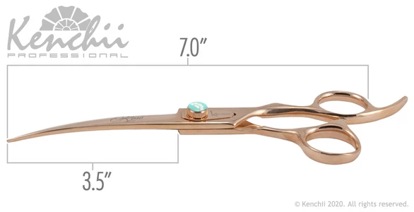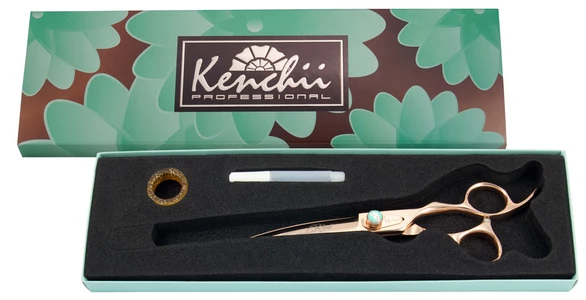 Kenchii Rosé scissors and thinners are made from our proprietary level 2 Japanese molybdenum materials finished with rose gold titanium. Semi-convex, microserrated edge is designed to reduce slippage and enhance cutting performance. Great for everyday grooming.