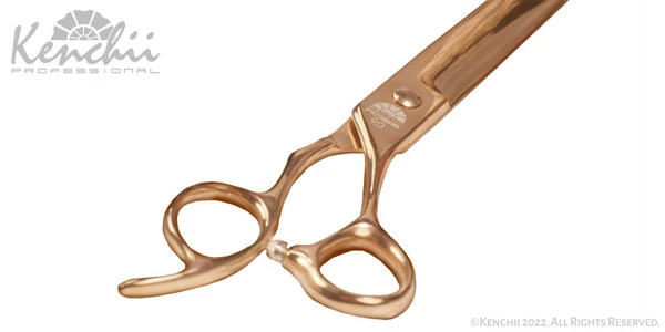 Kenchii Rosé scissors and thinners are made from our proprietary level 2 Japanese molybdenum materials enrobed with rose gold titanium. Semi-convex, microserrated edge is designed to reduce slippage and enhance cutting performance. Great for everyday grooming.