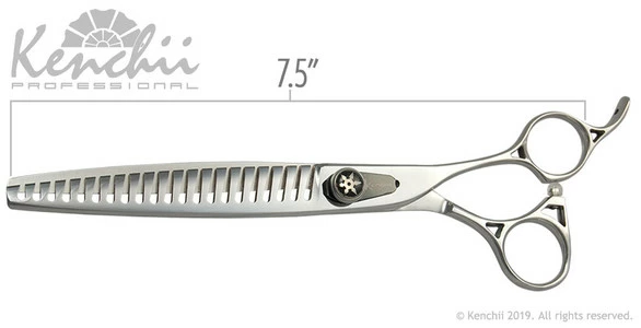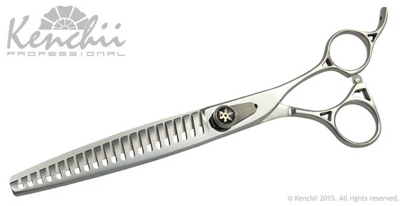 The Shinobi line of shears provides an exceptionally smooth cut. The 21-tooth blender has an ultra sharp semi-convex edge well suited for thick and double coat fur, and provides an ultra smooth blending experience with moderate thinning power.