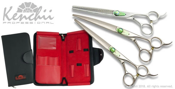 Set includes animal-friendly KEL5Z faux leather 5-shear case ($39 MSRP), Level 2 molybdenum T-Series™ 7.0-inch straight shear, 7.0-inch curved shear, and 48-tooth 6.5-inch thinner.