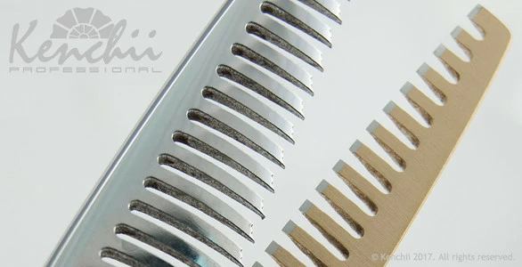 This 30T double thinner has teeth on both blades, provides a smooth cut with fine blending power, and absolutely no visible lines.