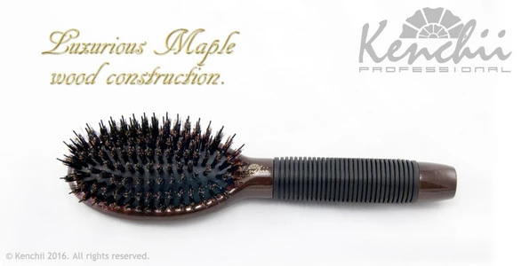 Boar and anti-static ionic nylon bristles help create amazing shine. One-piece luxurious maple wood resists breaking. Superior 6-facet non-slip grip.